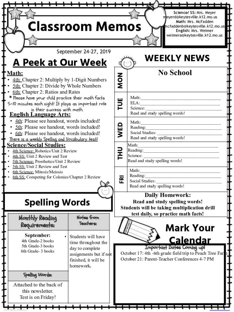 4th-6th Weekly Newsletter September 24-27